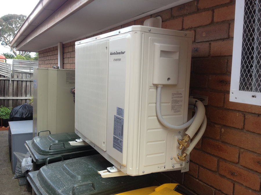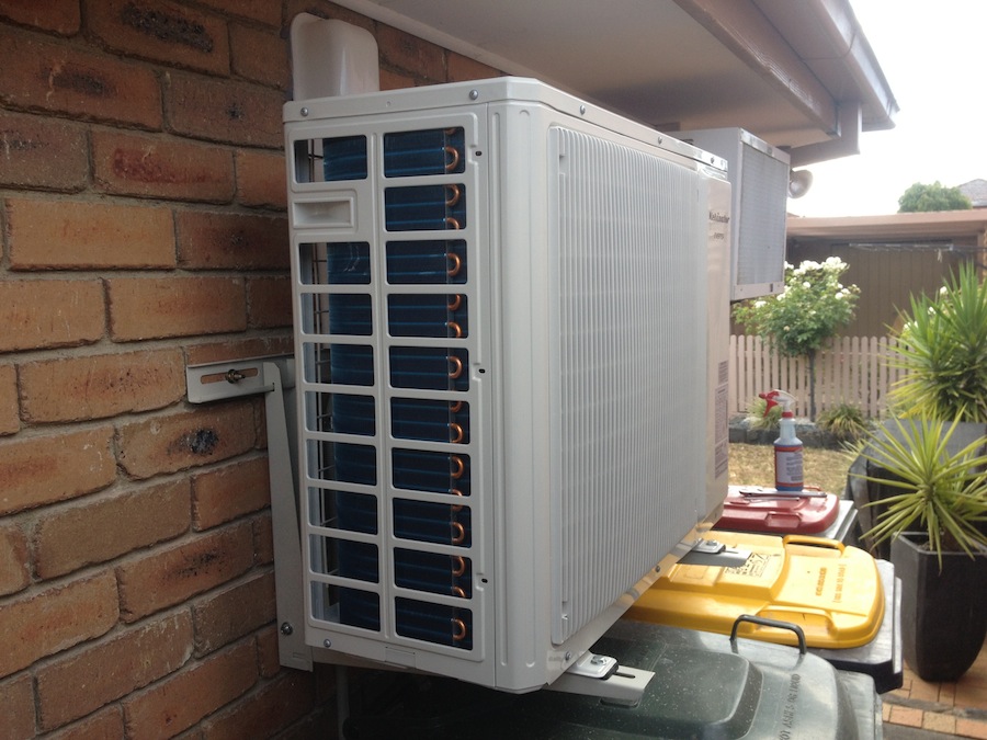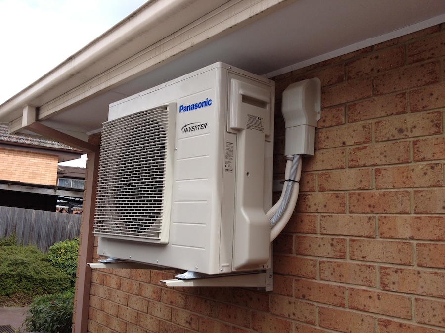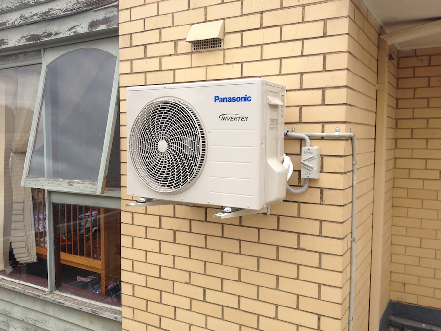 The split system’s external unit mounted on the roof or on a wall bracket